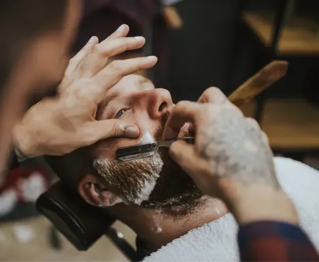 Eine luxuriöse Rasur mit einem Rasiermesser, heißen Handtüchern und hochwertiger Rasiercreme für ein ultra-glattes Ergebnis.